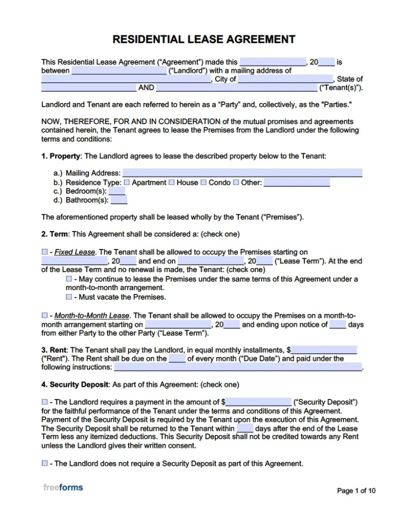 Free Rental/lease Agreement Templates (all 50 States)