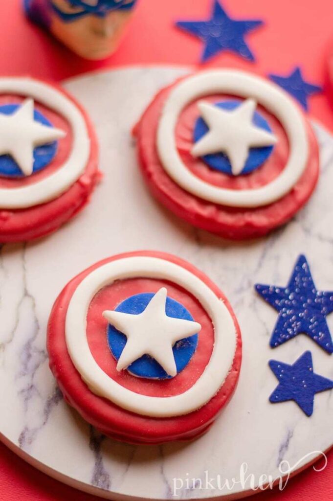 Cupcakes are also easy to decorate. Top them with red, white and blue icing and some star confetti! You can print out some Captain America cupcake toppers and it will be an even bigger hit!