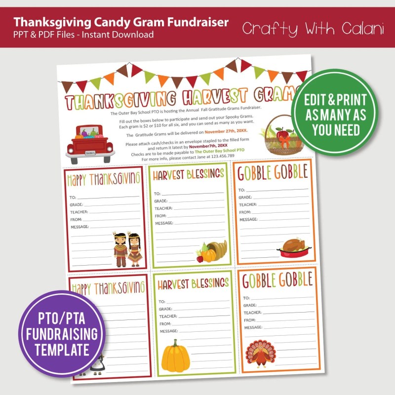 Thanksgiving Candy Gram Template Fall Gratitude Gram Pta Pto