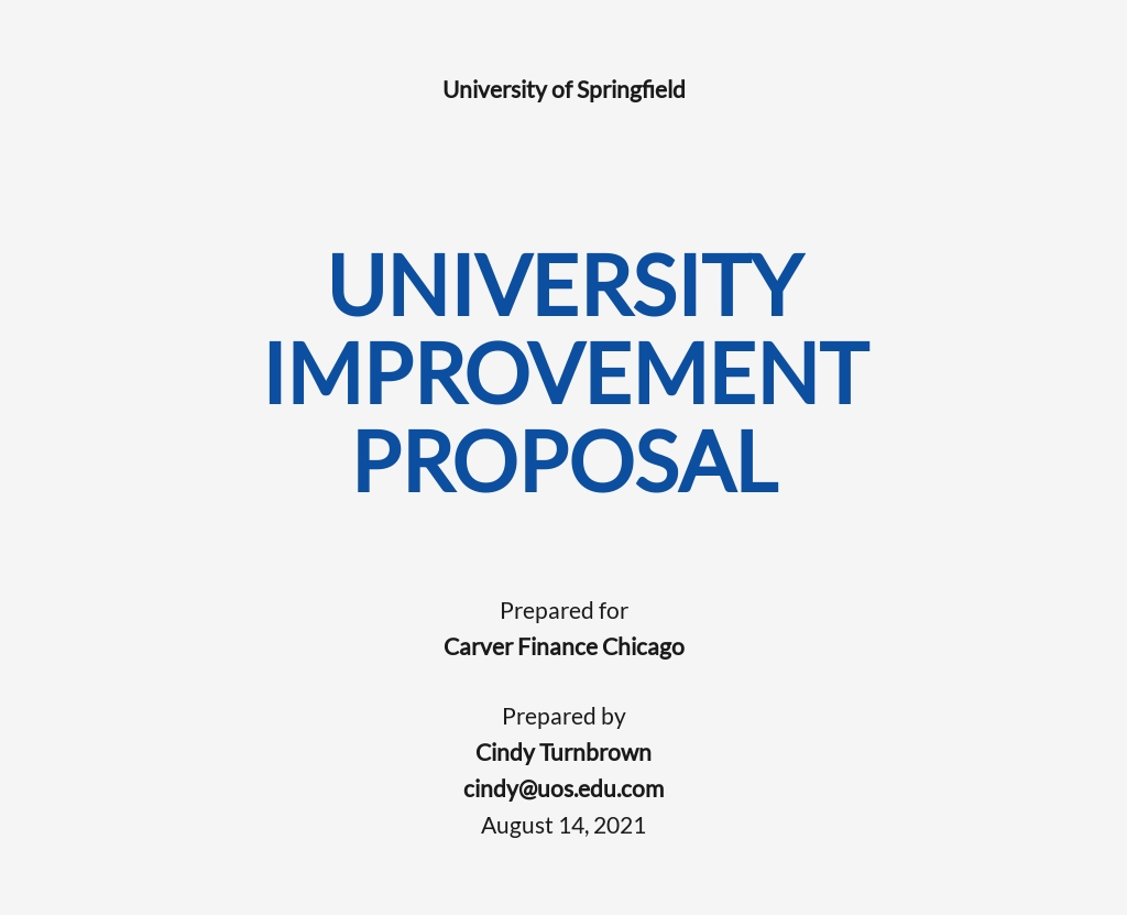 - Title Page: This page presents the proposal’s title, the applicant’s name and affiliation, the submission date, and the funding agency or recipient organization. It should be concise and professional.