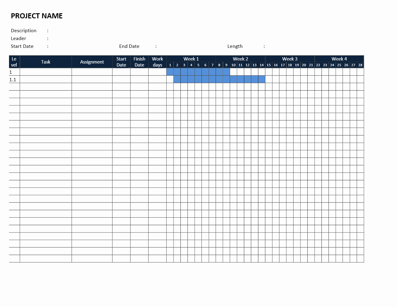 - Resource Allocation: The template should allow you to assign tasks to specific resources and track resource workload.