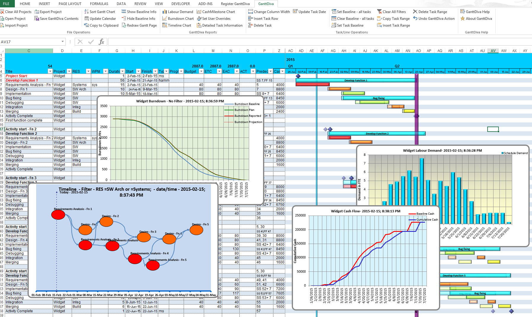 - Data Input: Populate the spreadsheet with your project’s tasks, start dates, end dates, dependencies, assigned resources, and progress.