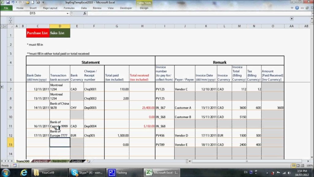 You can place these formulas in a new column (e.g., “Balance”) to automatically calculate values based on the entered data. Remember to start every formula with an equals sign (=).