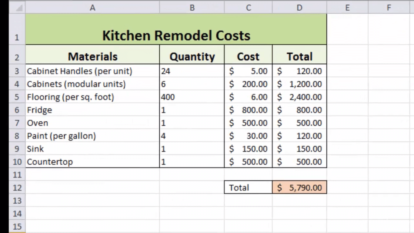Excel’s true power lies in its ability to perform calculations. Start with these simple formulas: