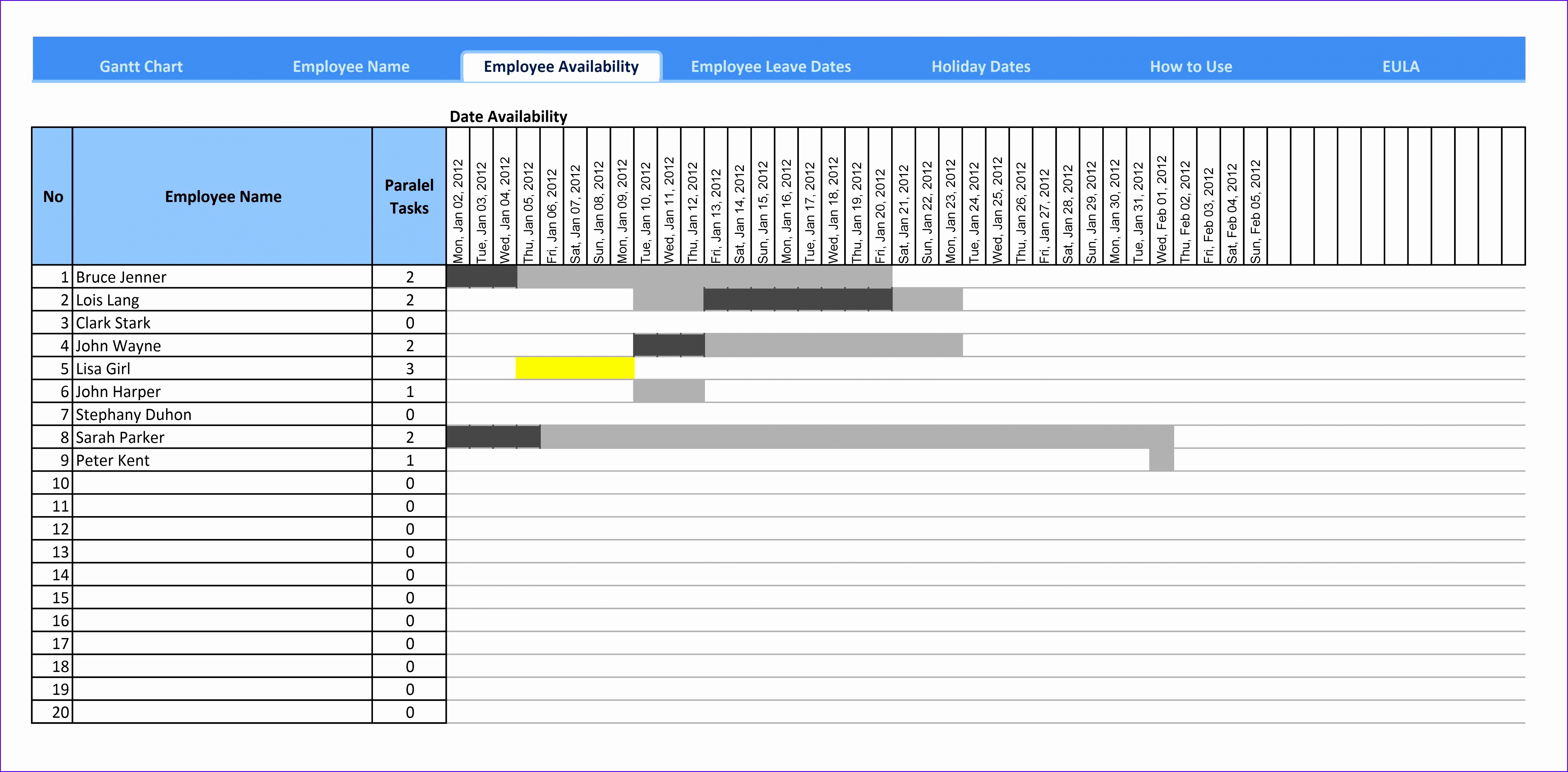 - Gantt Chart: A visual timeline showing task dependencies, start dates, and end dates. While Excel’s native Gantt chart capabilities are limited, you can create a basic version using conditional formatting and formulas to represent task durations as colored bars across a timeline.
