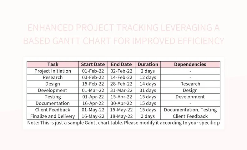 - Dependency Management: A Gantt chart clearly illustrates the dependencies between tasks, ensuring that tasks are executed in the correct sequence. This prevents delays and ensures that prerequisite tasks are completed before dependent tasks are started.
