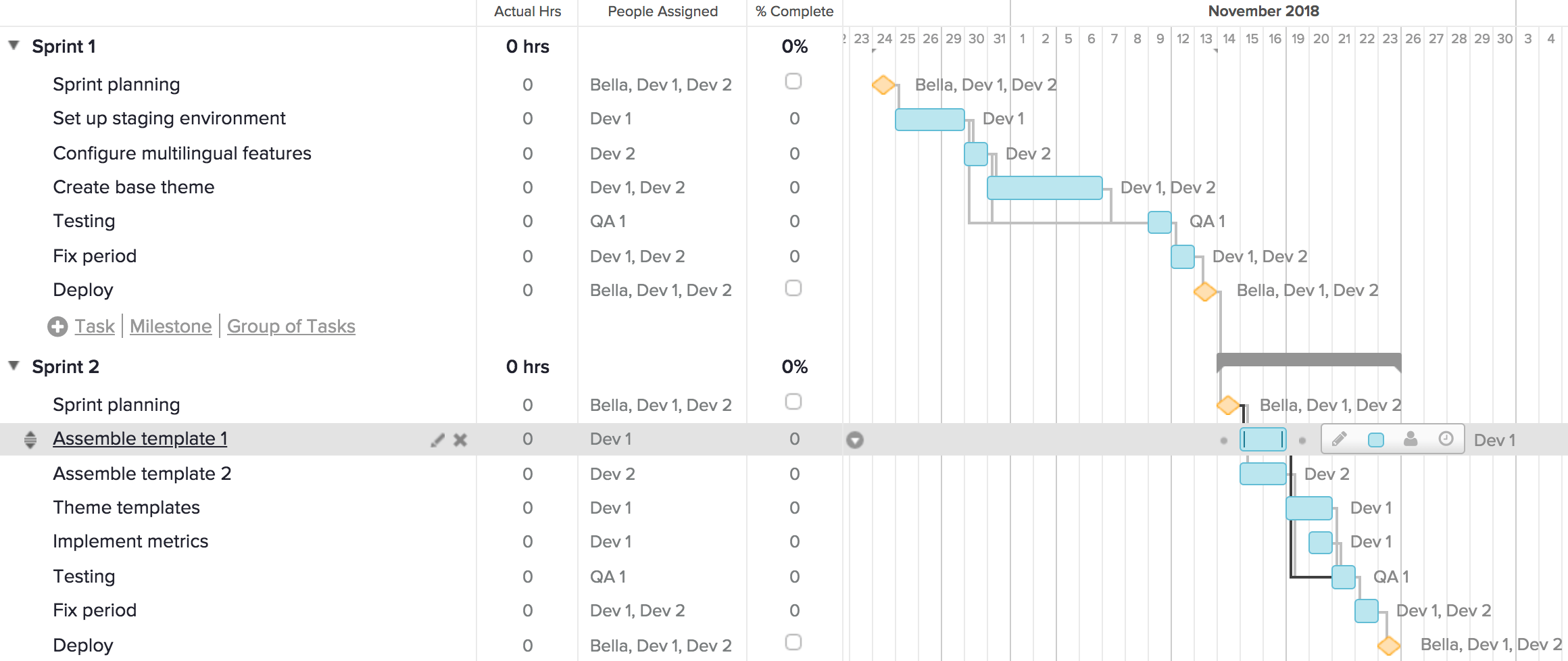 - Milestones: Highlights key milestones within the project timeline.