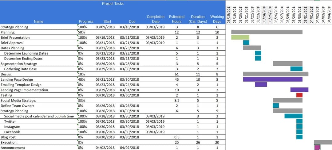 This method leverages Excel’s built-in features, particularly conditional formatting, to visually represent the Gantt chart. * **Data Preparation:** Create an Excel sheet with columns for Task Name, Start Date, Duration (in days), End Date (calculated using a formula), and Completion Percentage. Ensure dates are formatted correctly. * **Chart Area:** Select a range of cells to represent the Gantt chart timeline. The columns will represent days or weeks, depending on the project’s duration. * **Conditional Formatting:** Use conditional formatting with formulas to highlight cells corresponding to task durations. For example, a formula might check if a specific date falls within a task’s start and end dates and, if so, apply a color fill to that cell. * **Completion Indicators:** Add another layer of conditional formatting to visually represent task completion percentage. Use data bars or color scales based on the Completion Percentage column. * **Pros:** Simple to implement, utilizes familiar Excel skills, requires no additional software. * **Cons:** Can be less visually appealing and customizable compared to dedicated Gantt chart software. Limited interactive features. Performance can degrade with large datasets.