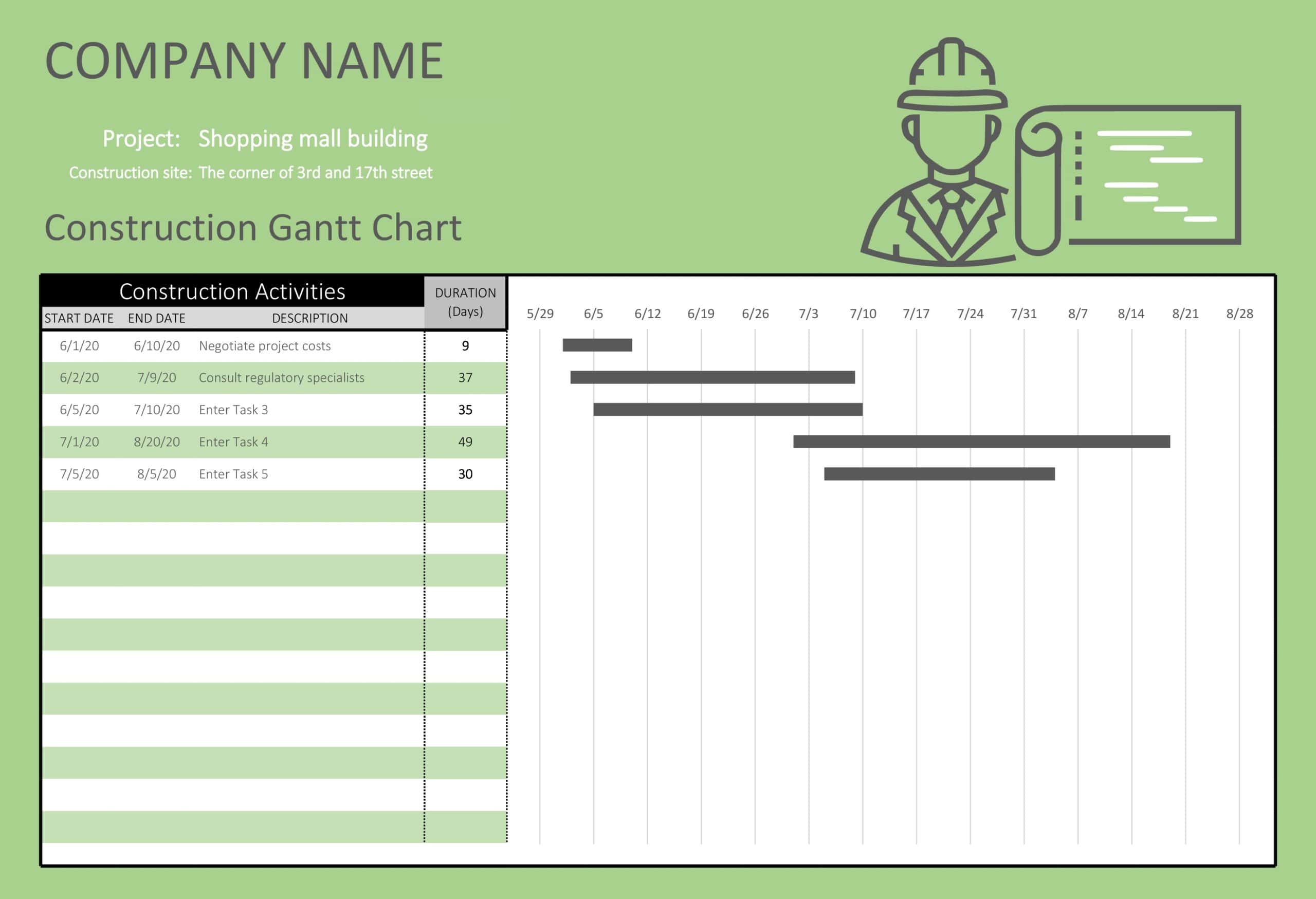 5. Google Sheets Gantt Chart Templates