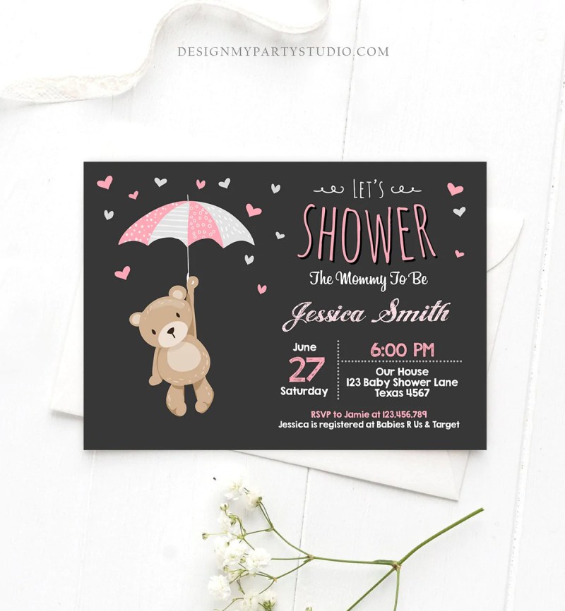 Baby Shower Invites Template – This teddy bear baby shower invitation is available as a QUICK DOWNLOAD editable template. Edit directly in your browser using the Templatet web app. You don’t need to download software or install fonts, and you can even try it before you buy!