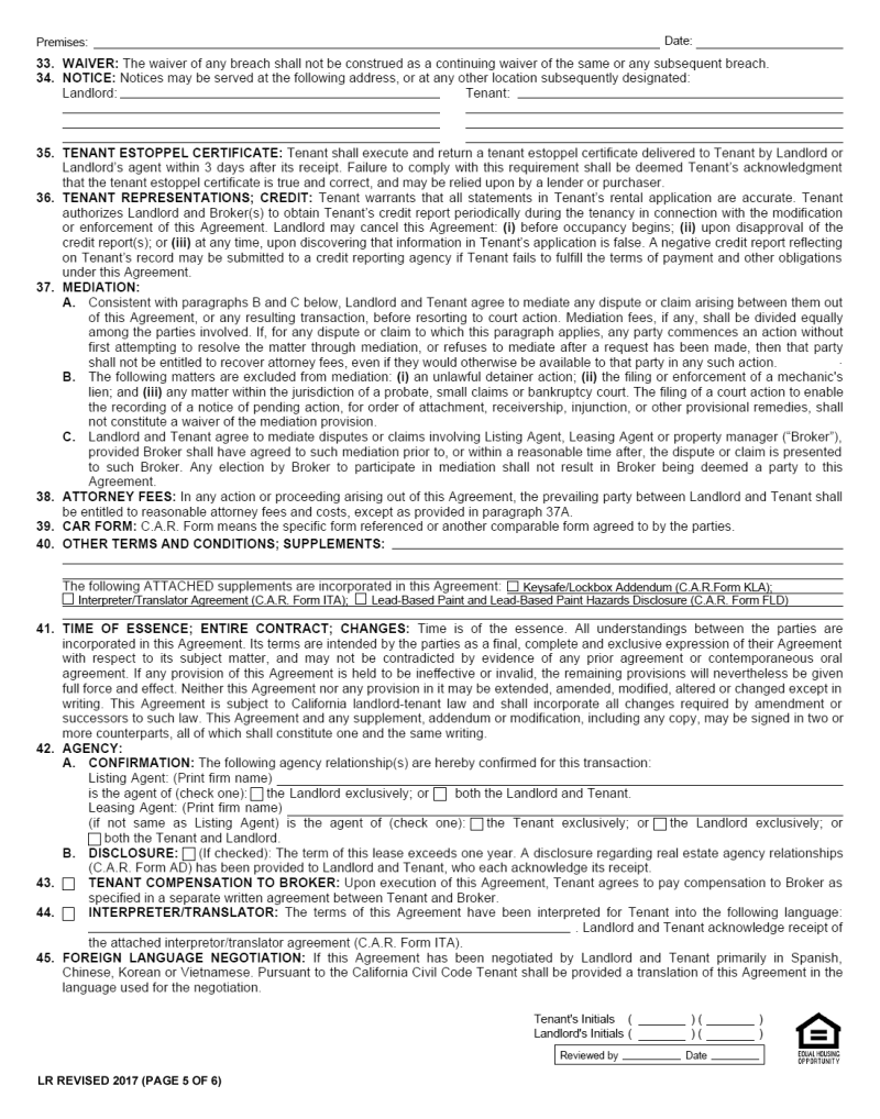 This lease agreement (this “Lease”) is dated between (“Landlord”) and (“Tenant”). The parties agree as follows.